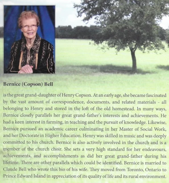 Dr. Bernice Bell studied at the University of Toronto, and later as a professor of social work and gerontology. Upon retirement in 1991, Bernice and her husband, Claude, retired to Prince Edward Island. Dr. Bell died at Charlottetown on July 17, 2024.