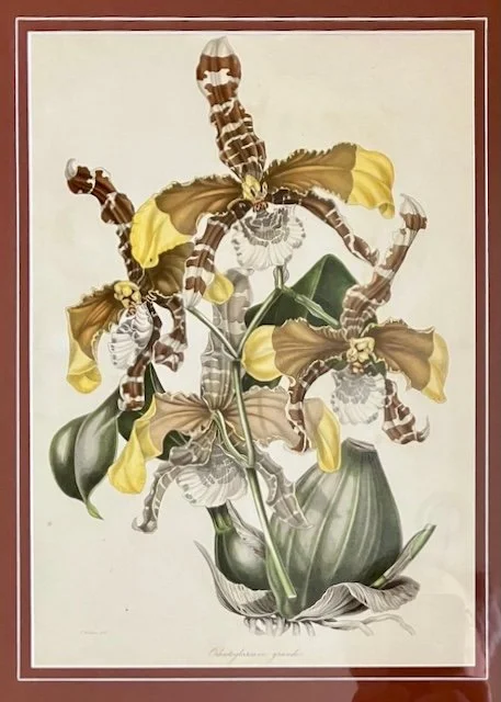 Original botanical watercolor of the Lady Slipper by Samuel Holden, c1840. Matted and framed under glass.