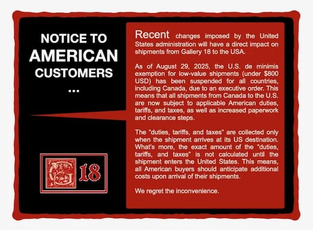 Gallery 18 is interested in single items, or entire collections. Contact us for more information …